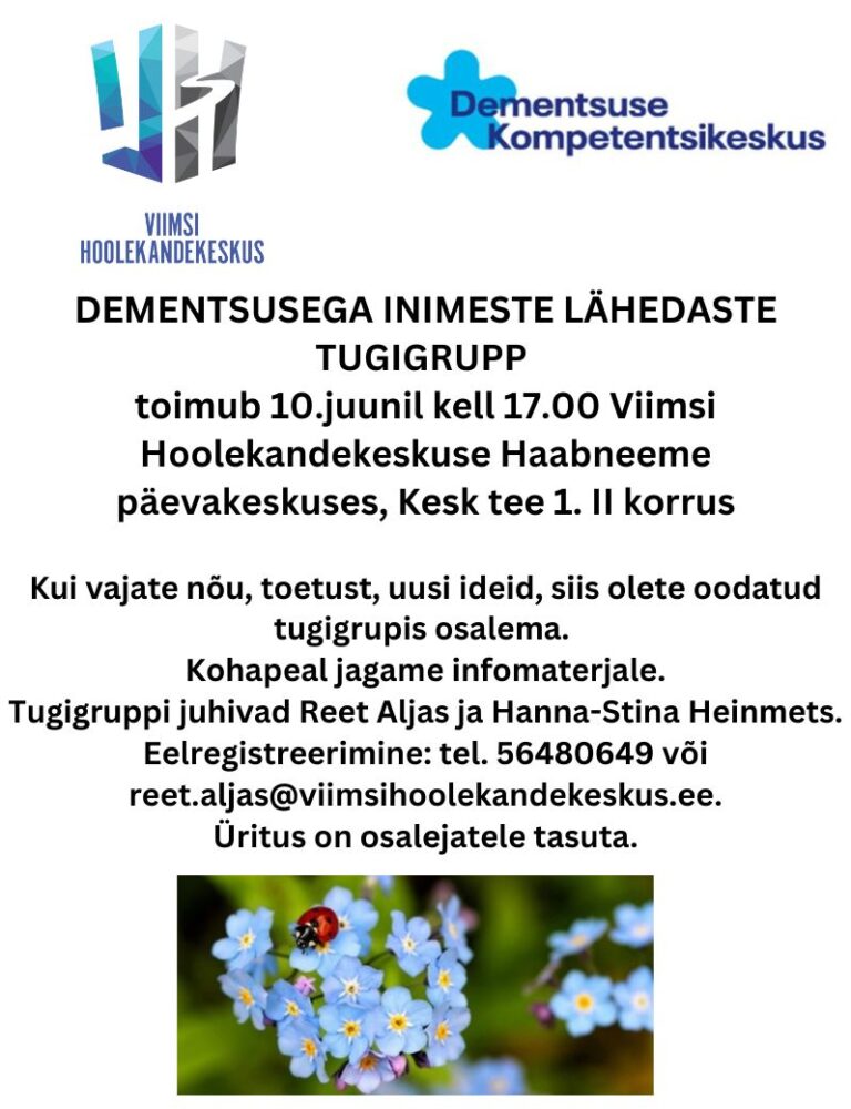 Dementsusega isikute lähedaste tugirühm 10.06.kell 17.00 Hea teadaKirjutas reet.aljasmai 28, 2025 Loe edasi