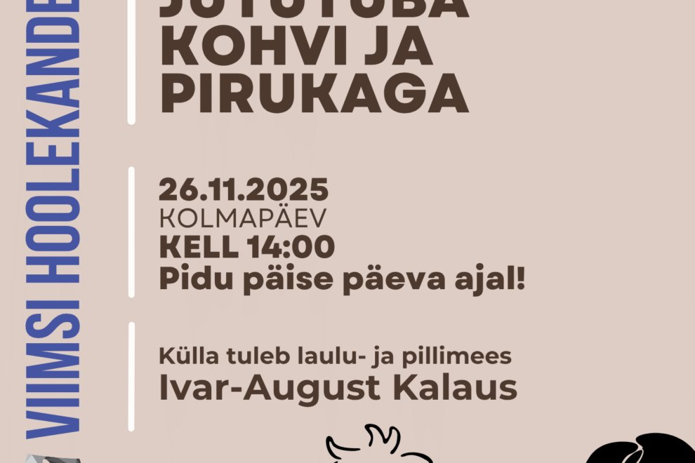 Randvere päevakeskuse jututoas kohvi ja pirukaga on külas laulu- ja pillimees IVAR-AUGUST KALAUS. Pidu päise päeva ajal. Tule uudistama! Hea teadanovember 6, 2025 Loe edasi