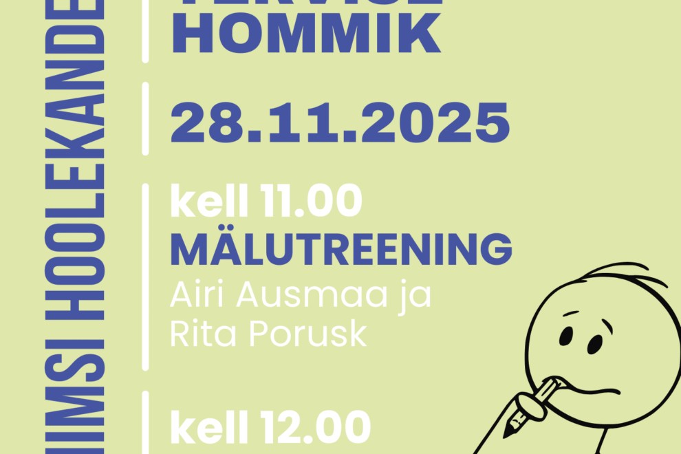 Haabneeme päevakeskuses toimuval vaimse tervise hommikul toimub MÄLUTREENING ja ROBOOTIKA. Tule pane ennast proovile! Hea teadanovember 6, 2025 Loe edasi