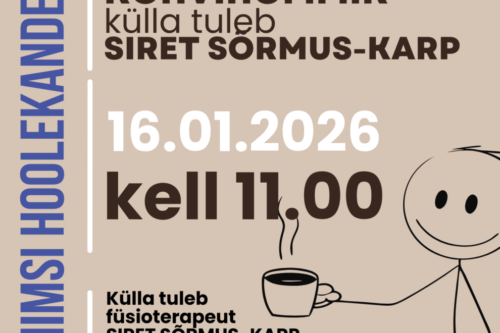 Selle aasta esimesel kohvihommikul Haabneeme päevakeskuses on külaliseks füsioterapeut Siret Sõrmus-Karp Hea teadajaanuar 7, 2026 Loe edasi