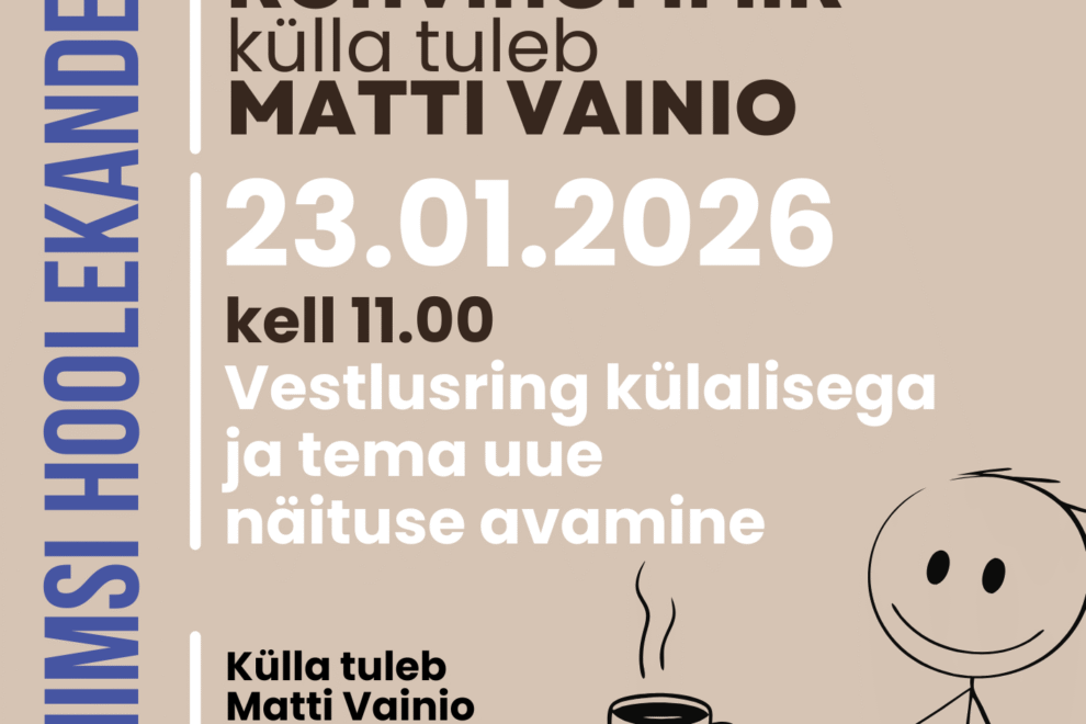 Haabneeme päevakeskuses on kohvihommiku külaliseks Viimsi Kunstikooli direktor Matti Vainio. Saame tutvuda ka tema töödega. Hea teadajaanuar 7, 2026 Loe edasi