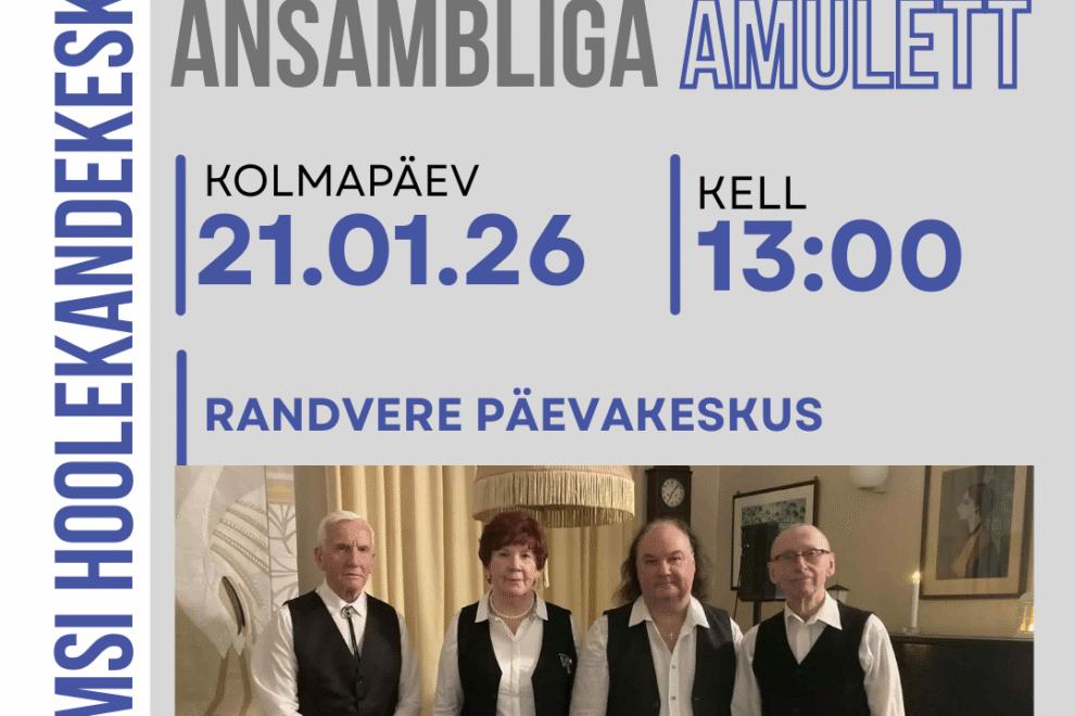 Randvere päevakeskuses esineb Uusaasta kontserdil ansambel AMULETT Hea teadajaanuar 7, 2026 Loe edasi