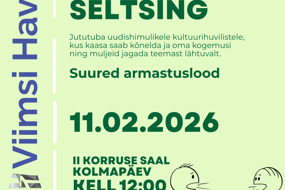Silmaringi Seltsingus Haabneeme päevakeskuses veab vestlust PILLE MÖLDER. Armastus on see… Hea teadajaanuar 30, 2026 Loe edasi