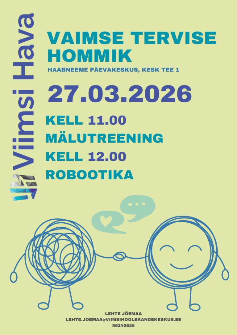 Vaimse tervise hommikul Haabneeme päevakeskuses teeme mälutrenni ja tegeleme robootikaga. Astu läbi! Hea teadaKirjutas marje.plaan@viimsihoolekandekeskus.eeveebruar 26, 2026 Loe edasi