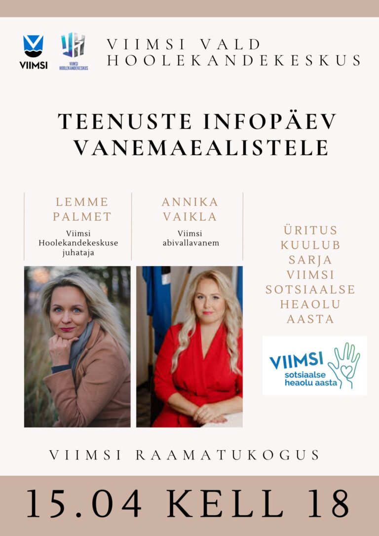 Teenuste infopäev vanemaealistele toimub Viimsi Raamatukogus. Vestlusringis on Viimsi abivallavanem Annika Vaikla, Viimsi Hoolekandekeskuse juhtaja Lemme Palmet ja sotsiaaltöö spetsialistid. Üritus kuulub Viimsi sotsiaalse heaolu aasta ürituste sarja Hea teadaKirjutas marje.plaan@viimsihoolekandekeskus.eeaprill 2, 2025 Loe edasi