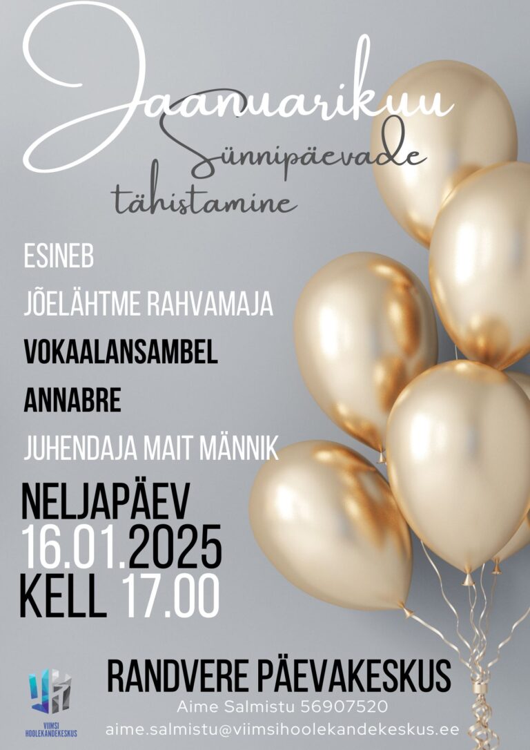 Jaanuarikuu sünnipäevalapsi tuleb Randvere päevakeskusesse tervitama Jõelähtme vokaalansambel AnnabRe. Tuleb tore kontsert! Hea teadaKirjutas marje.plaan@viimsihoolekandekeskus.eejaanuar 3, 2025 Loe edasi