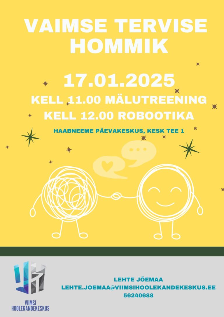 Aitame kanda hoolt oma vaimse tervise eest. Haabneeme päevakeskus kutsub mälutreeningule ja robootikaringi. Hea teadaKirjutas marje.plaan@viimsihoolekandekeskus.eejaanuar 3, 2025 Loe edasi