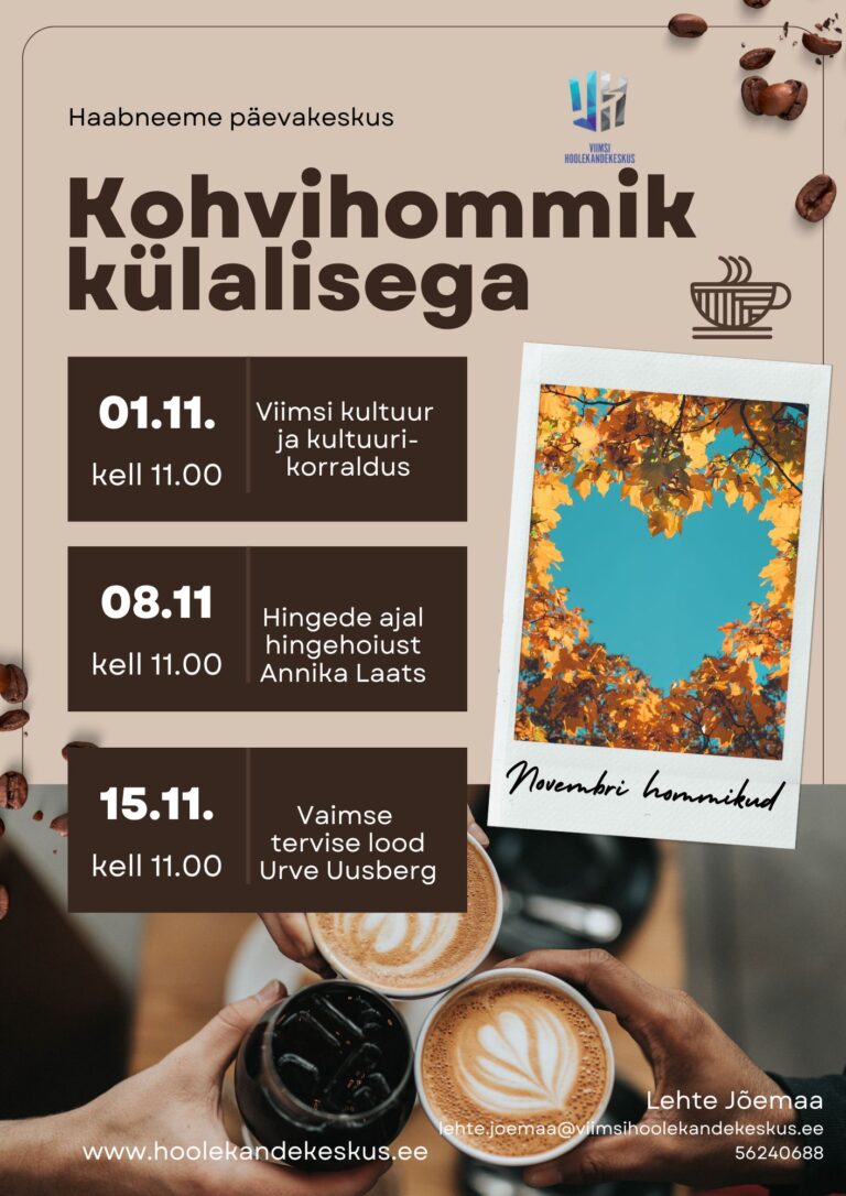 Viimsi valla kultuurikorraldusest tulevad rääkima valla juhtivad kultuurikorraldajad. Kuuleb nii mõndagi huvitavat ja saab tassi kohvi ja kooki.