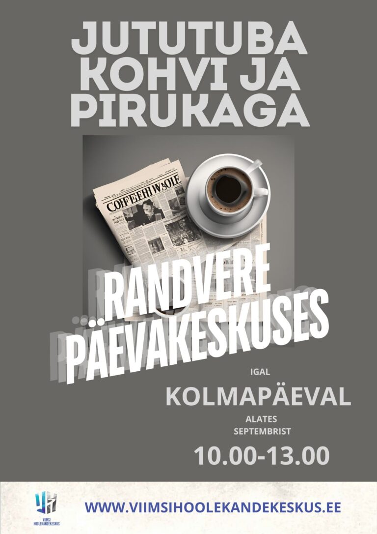 Randvere päevakeskus kutsub igal kolmapäeval kell 10-13 jututuppa kohvi ja pirukaga. Astu läbi! Hea teadaKirjutas marje.plaan@viimsihoolekandekeskus.eeseptember 3, 2024 Loe edasi