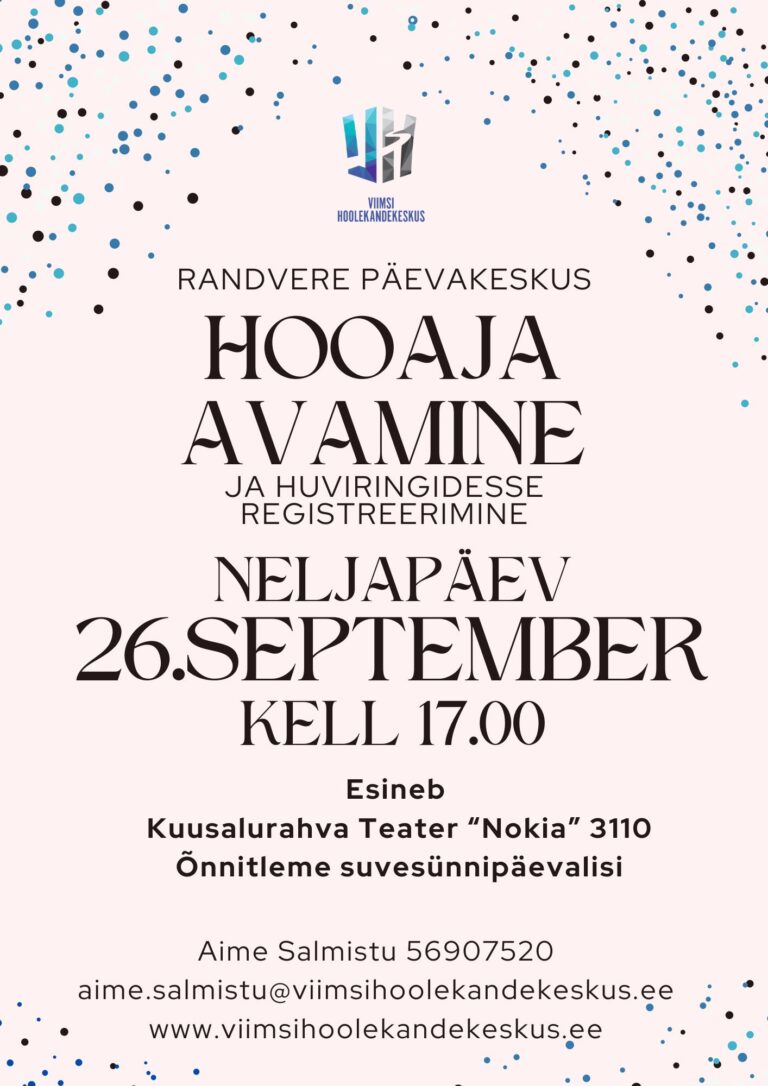 Ootame teateid tublidest vanavanematest kuni 20. augustini! Hea teadaKirjutas marje.plaan@viimsihoolekandekeskus.eeaugust 14, 2024 Loe edasi