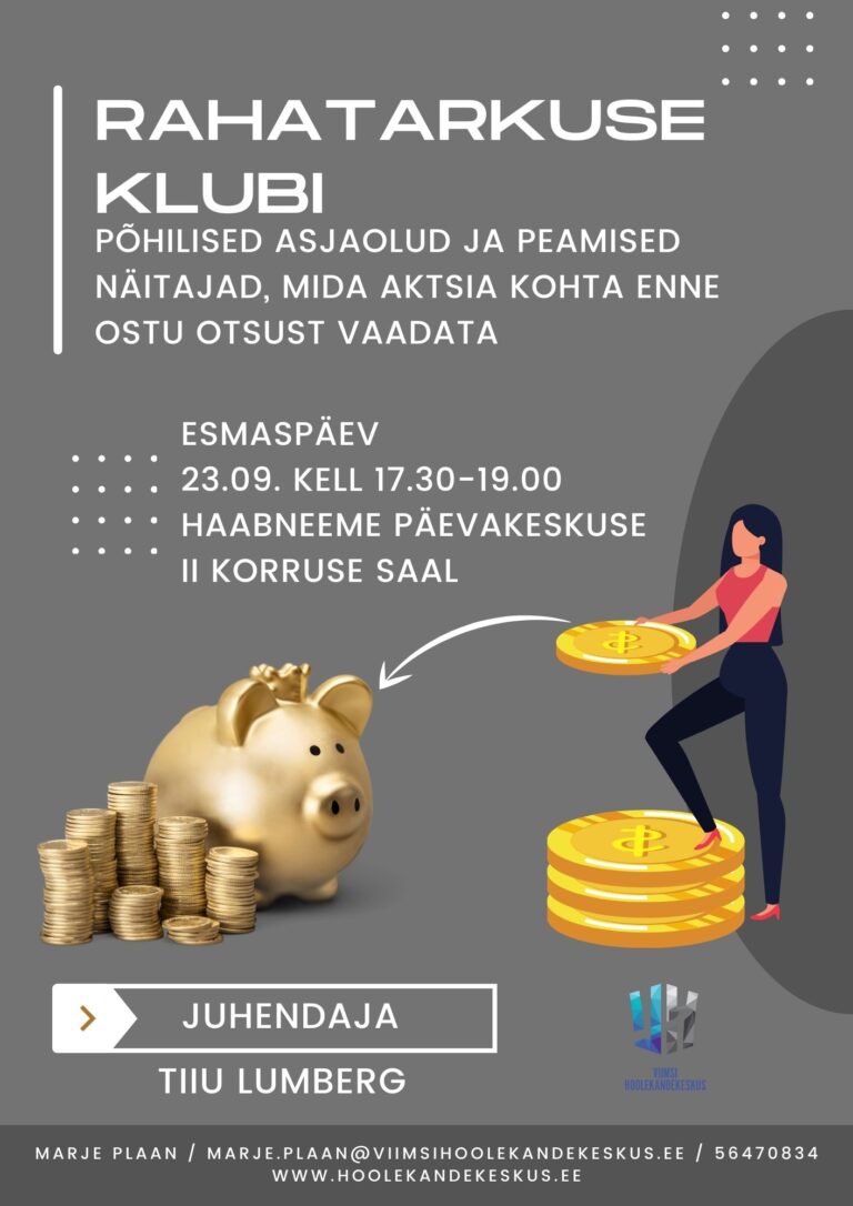 Rahatarkuse klubis tuleb juttu aktsiate ostmisest. Oma kogemusi jagab viimsilane Tiiu Lumberg. Ootame osalema! Hea teadaKirjutas marje.plaan@viimsihoolekandekeskus.eeseptember 17, 2024 Loe edasi