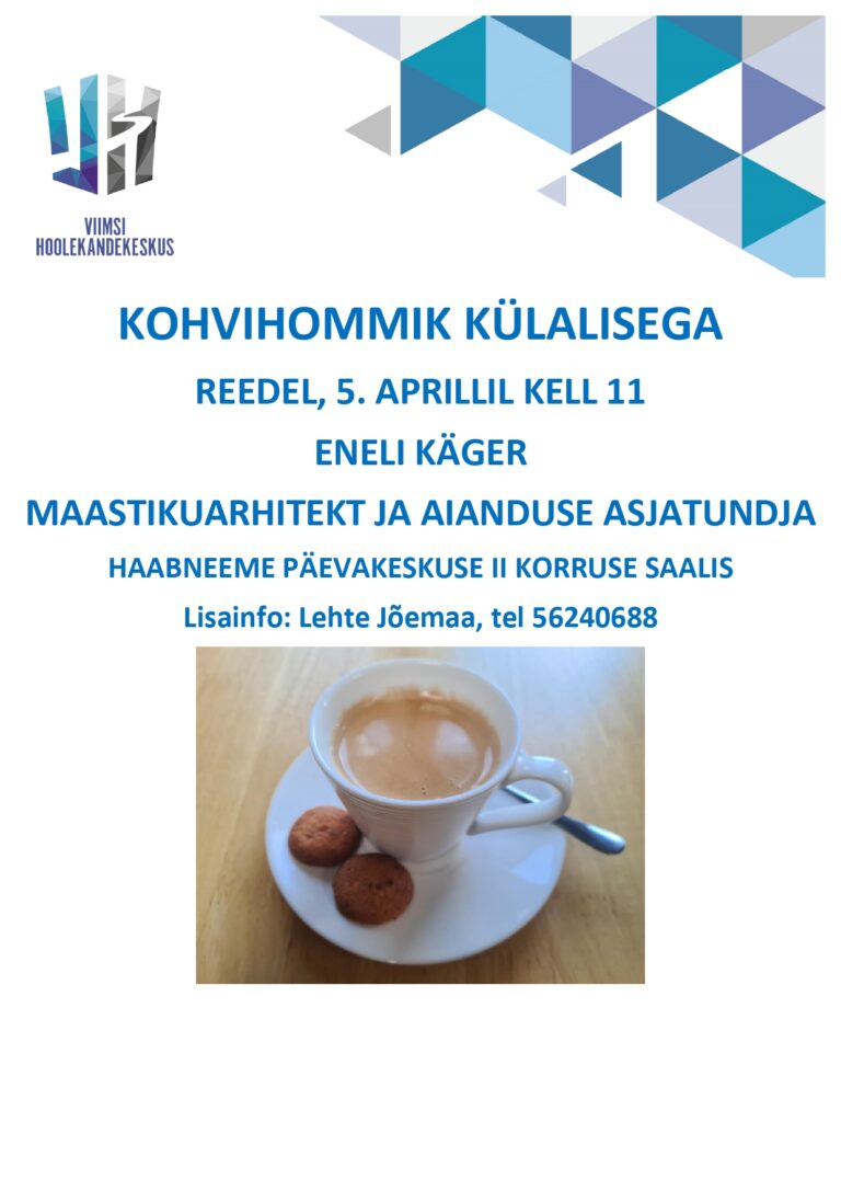 Aprillikuu esimesel kohvihommikul saad maastikuarhitekti ja aianduse asjatundja Eneli Kägeri käest kuulda ja küsida kevadiste aiatööde kohta Hea teadaKirjutas marje.plaan@viimsihoolekandekeskus.eemärts 26, 2024 Loe edasi