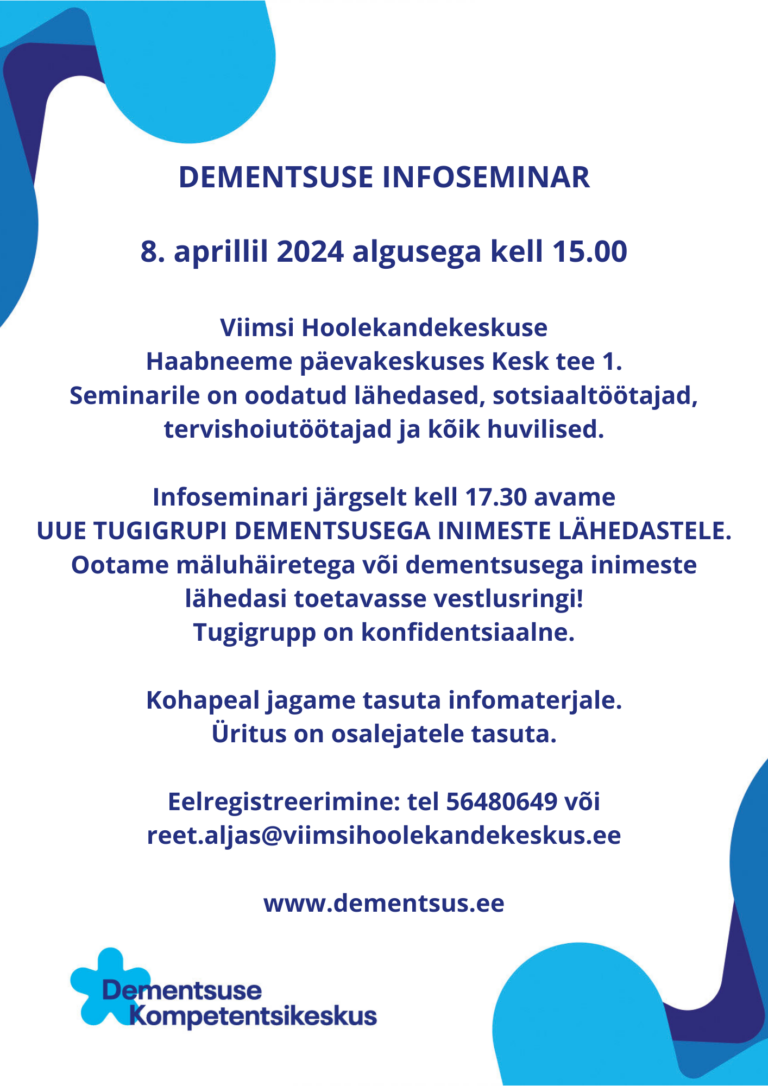 Viimsi Hoolekandekeskuses toimuvale infoseminarile dementsusest on oodatud kõik, keda see teema puudutab. Dementsusega inimeste lähedastel on võimalus liituda uue tugigrupiga Hea teadaKirjutas marje.plaan@viimsihoolekandekeskus.eemärts 26, 2024 Loe edasi