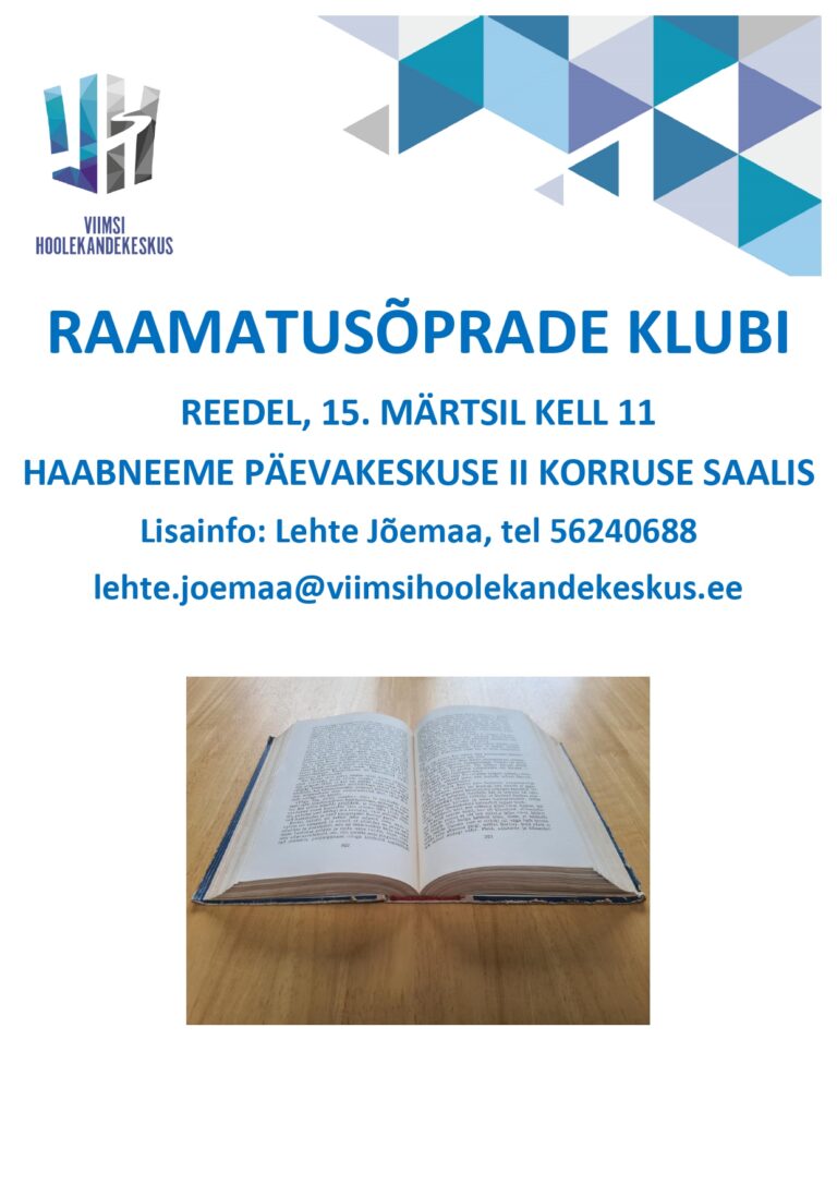 Raamatusõprade klubi kogunemine toimub Haabneeme päevakeskuses vaid üks kord kuus. Jälgi reklaami! Hea teadaKirjutas marje.plaan@viimsihoolekandekeskus.eeveebruar 19, 2024 Loe edasi
