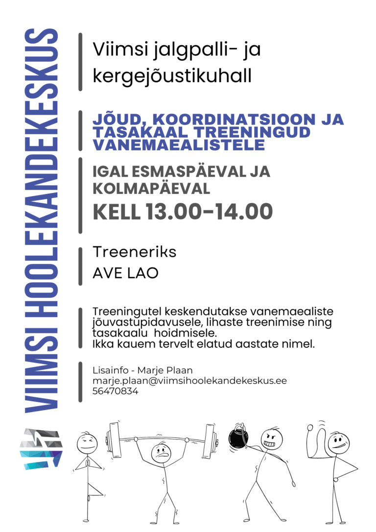 Alates 1. detsembrist alustame JÕUSAALI treeningutega vanemaealistele. Ootame rohket osavõttu! Hea teadaKirjutas marje.plaan@viimsihoolekandekeskus.eenovember 27, 2025 Loe edasi