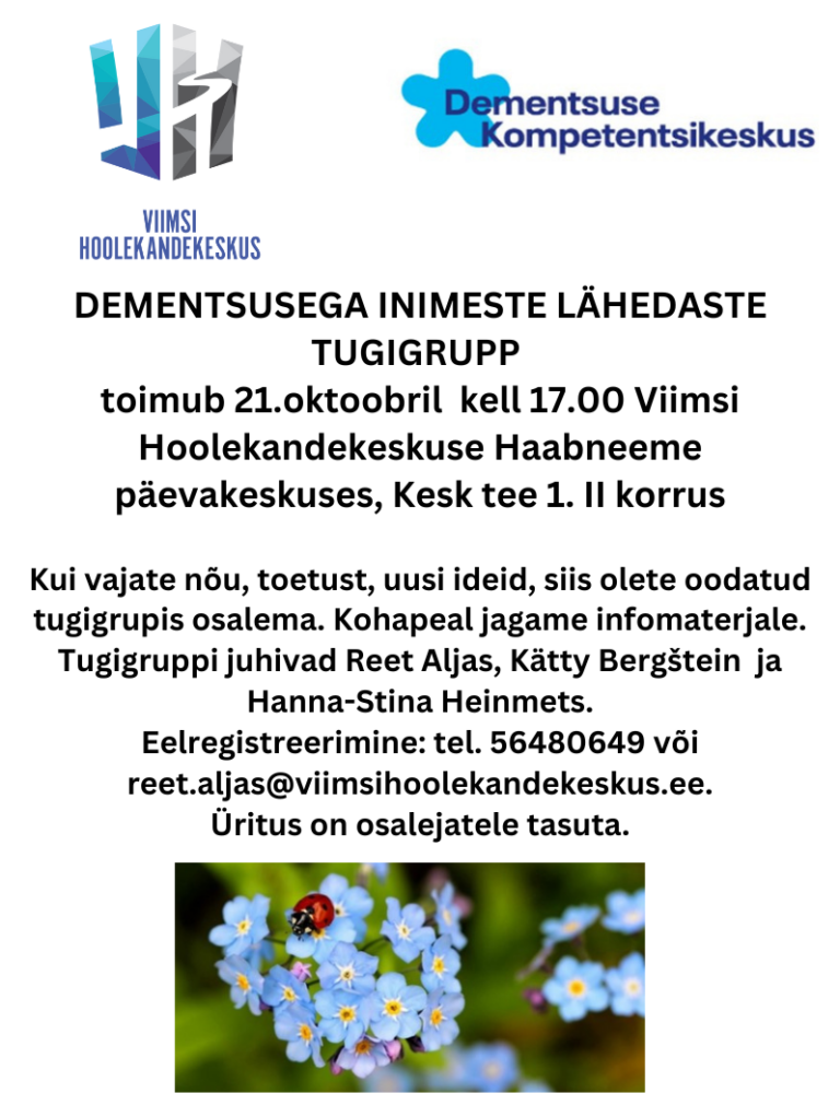 Dementsusega isikute lähedaste tugirühm 21.10 kell 17.00 Hea teadaKirjutas reet.aljasoktoober 8, 2025 Loe edasi