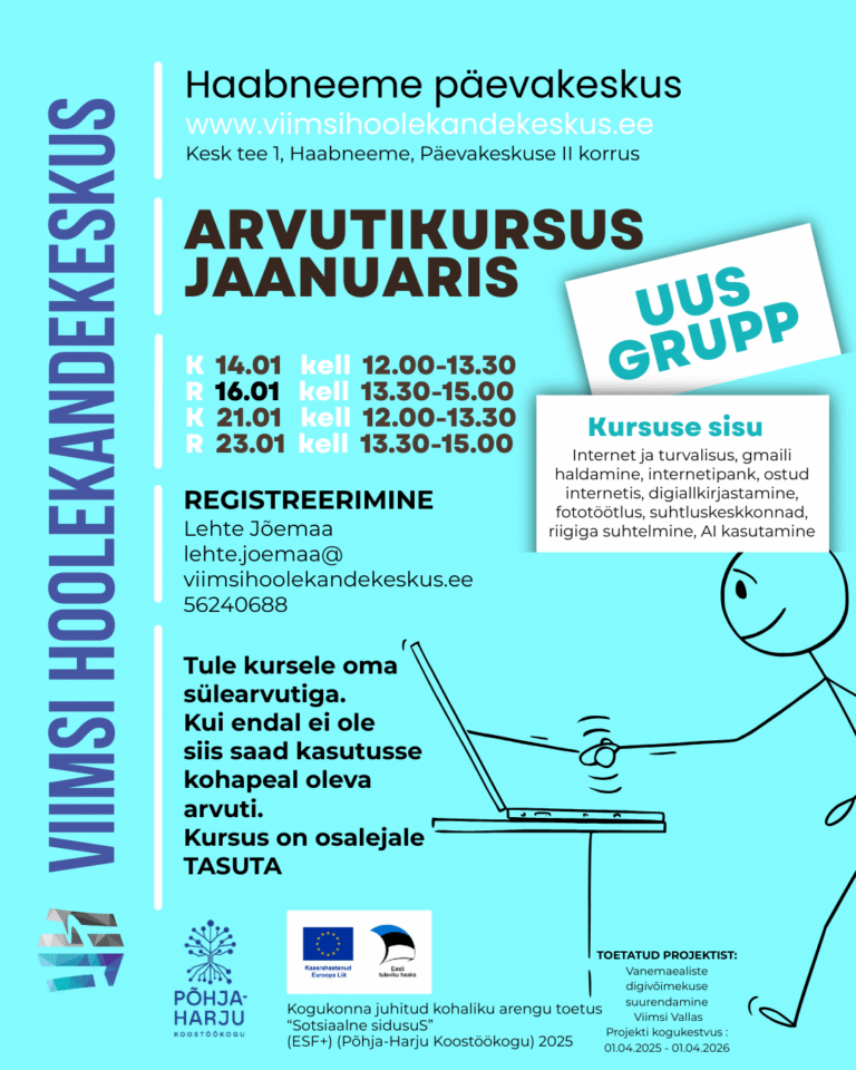 Digimentori teenus Viimsi Hoolekandekeskuses ja Raamatukogus Hea teadaKirjutas reet.aljasnovember 10, 2025 Loe edasi