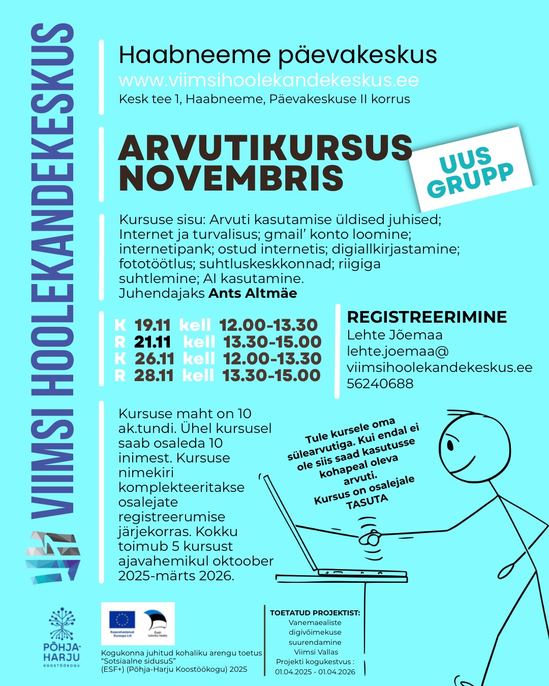 Haabneeme päevakeskuses toimuval vaimse tervise hommikul toimub MÄLUTREENING ja ROBOOTIKA. Tule pane ennast proovile!november 6, 2025