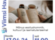 Kategooria: Hea teadamärts 26, 2026 Jaga postitust Share on FacebookShare on Facebook Share on XShare on X Post navigationEelminePrevious post:Kultuuri- ja raamatuklubis on ootamas mõnus vestlusring, et arutada kultuurisündmusi ja loetud raamatuid. Tule ütle sõna sekka!JärgmineNext post:Viimsi Hava ja Muusikute fond PLMF korraldavad Eesti Sõjamuuseumis tasuta klassikalise muusika kontserdi. Esinevad Marion Melnik (sopran) ja Piia Paemurru (klaver). Töötab kohvik Claudee koogid.Sarnased postitusedHaabneeme päevakeskuse kohvihommikul on külalisteks Viimsi Seenioride Nõukoja kandidaadid. Kindlasti tahad nendega tuttavaks saada, sest valimised on juba 18. aprillil.aprill 1, 2026Haabneeme päevakeskuses toimub floristika kursus. Juhendaja on Anneli Jürioja. Vajalik on eelnev registreerimine: lehte.joemaa@viimsihk.ee, tel 56240688aprill 1, 2026Haabneeme ja Randvere päevakeskused ootavad teid APRILLIS järgmistele sündmusteleaprill 1, 2026Dementsusega isikute lähedaste tugirühm toimub 7.04 kell 17.00märts 31, 2026Viimsi Hava ja Muusikute fond PLMF korraldavad Eesti Sõjamuuseumis tasuta klassikalise muusika kontserdi. Esinevad Marion Melnik (sopran) ja Piia Paemurru (klaver). Töötab kohvik Claudee koogid.märts 26, 2026Kultuuri- ja raamatuklubis on ootamas mõnus vestlusring, et arutada kultuurisündmusi ja loetud raamatuid. Tule ütle sõna sekka!märts 24, 2026