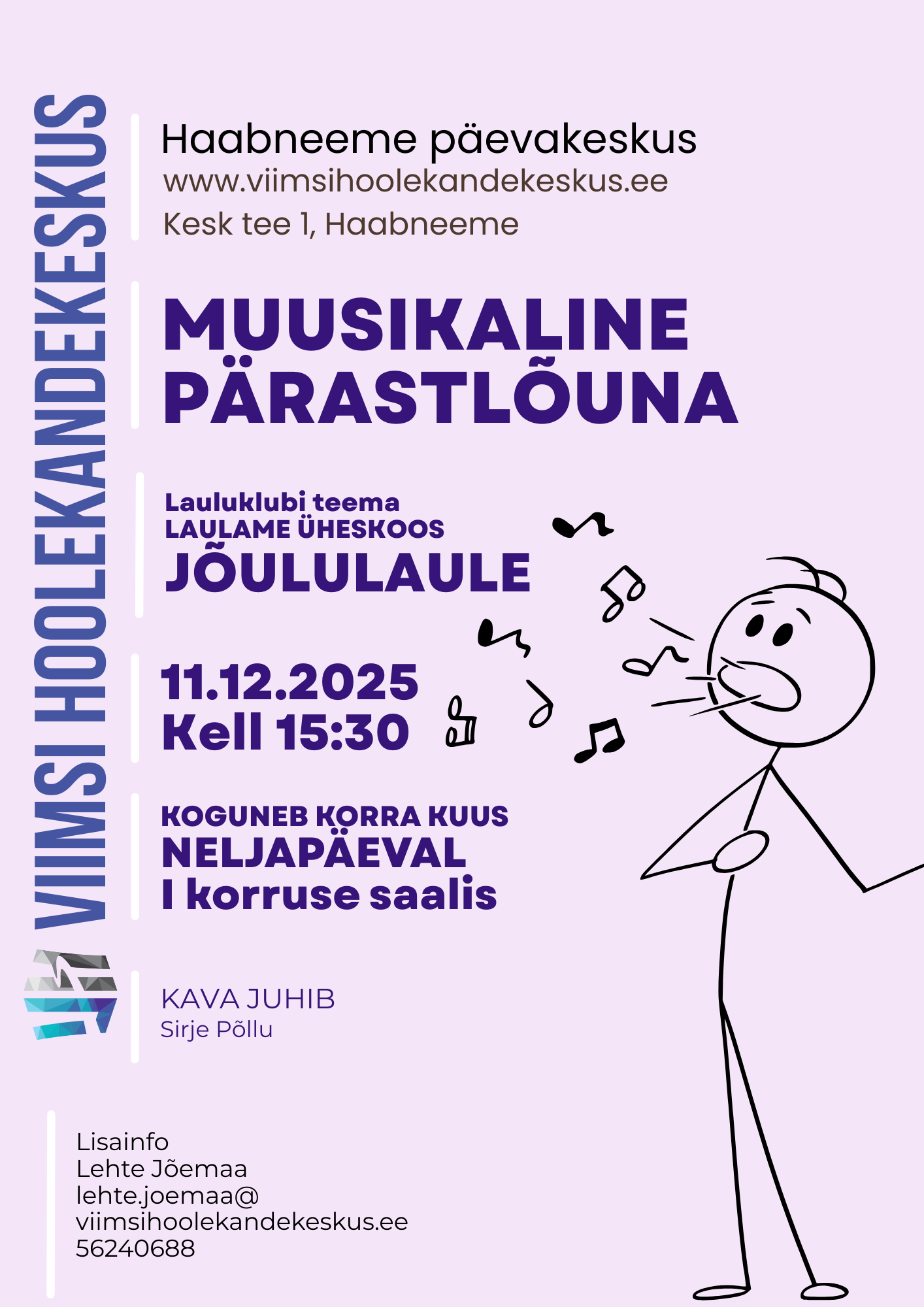 Randvere päevakeskuses on jõuluhõngulises töötoas külaliseks Erle Meresmaa. Koos mängitakse lauamänge. Tule uudistama!detsember 2, 2025