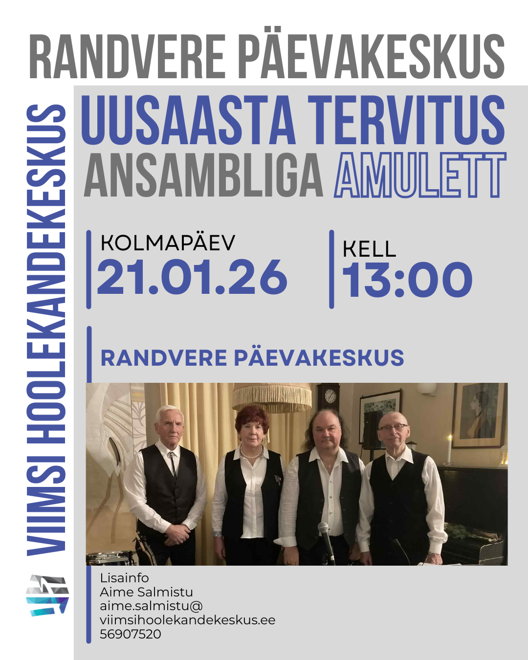 Kategooria: Hea teadajaanuar 7, 2026 Jaga postitust Share on FacebookShare on Facebook Share on XShare on X Post navigationEelminePrevious post:Selle aasta esimesel kohvihommikul Haabneeme päevakeskuses on külaliseks füsioterapeut Siret Sõrmus-KarpJärgmineNext post:Haabneeme päevakeskuses on kohvihommiku külaliseks Viimsi Kunstikooli direktor Matti Vainio. Saame tutvuda ka tema töödega.Sarnased postitusedIga kuu viimasel reedel kogunevad Haabneeme päevakeskuses mälutreeningu ja robootika huvilised. Toimub vaimse tervise hommikjaanuar 7, 2026Haabneeme päevakeskuses on kohvihommiku külaliseks Viimsi Kunstikooli direktor Matti Vainio. Saame tutvuda ka tema töödega.jaanuar 7, 2026Selle aasta esimesel kohvihommikul Haabneeme päevakeskuses on külaliseks füsioterapeut Siret Sõrmus-Karpjaanuar 7, 2026Lauluklubi koguneb Haabneeme päevakeskuses korra kuus neljapäeval. Seekord on külaliseks ANNE VELLI.jaanuar 7, 2026Rahatarkuse klubis arutatakse jaanuaris, mis toimub börsidel praegusel rahutul ajal. Juhendaja Tiiu Lumbergjaanuar 7, 2026Raamatuklubi koguneb Haabneeme päevakeskuses vaid korra kuus. Jälgi reklaami!jaanuar 7, 2026