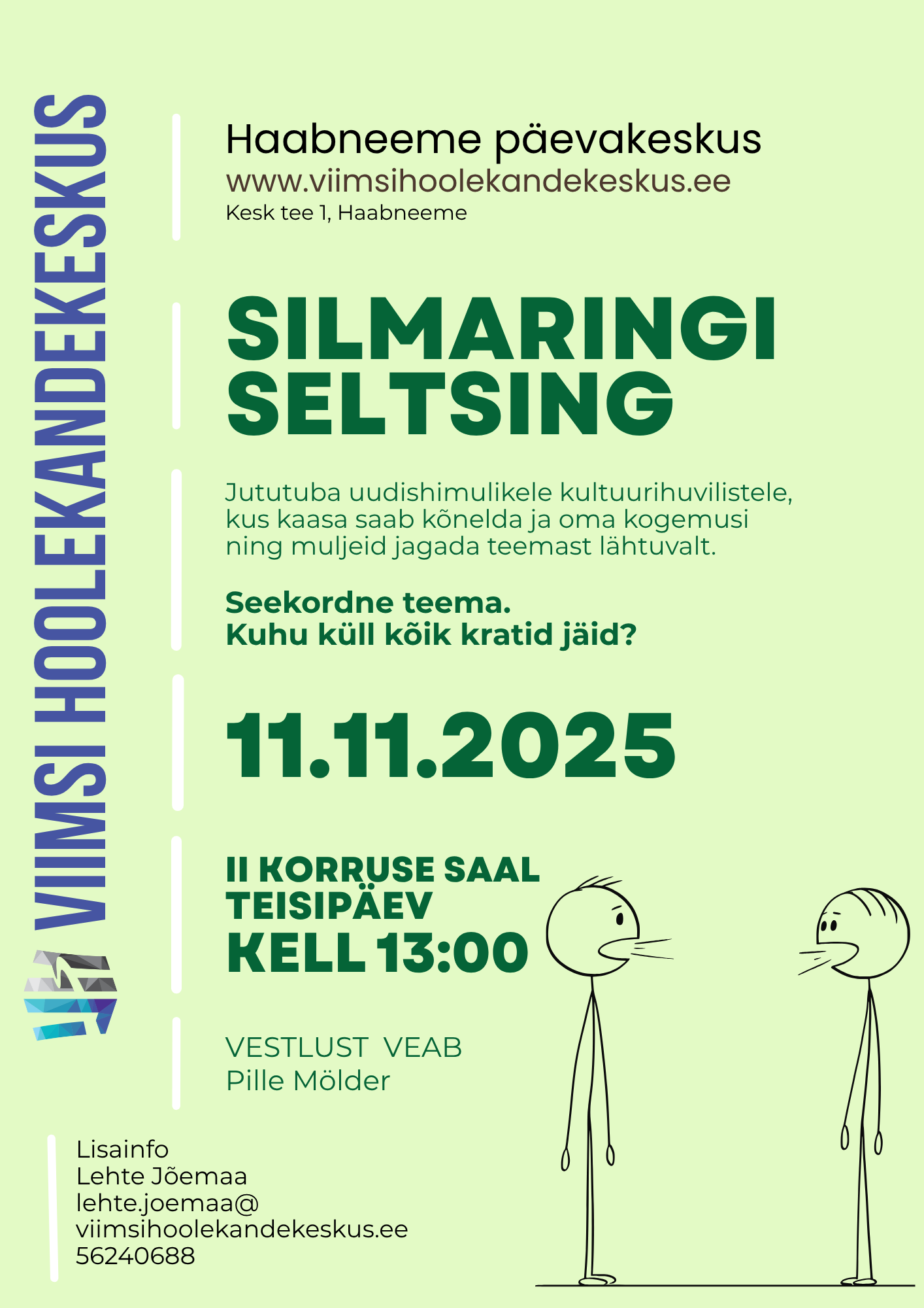 Kategooria: Hea teadanovember 6, 2025 Jaga postitust Share on FacebookShare on Facebook Share on XShare on X Post navigationEelminePrevious post:Selle aasta viimases rahatarkuse klubis käsitletakse ajakohaseid valdkondi aktsiatesse investeerimisel suurte muutuste keskel. Kogemusi jagab Tiiu LumbergJärgmineNext post:Randvere päevakeskuse jututoas kohvi ja pirukaga on külas laulu- ja pillimees IVAR-AUGUST KALAUS. Pidu päise päeva ajal. Tule uudistama!Sarnased postitusedDigimentori teenus Viimsi Hoolekandekeskuses ja Raamatukogusnovember 10, 2025Haabneeme päevakeskuses toimuval vaimse tervise hommikul toimub MÄLUTREENING ja ROBOOTIKA. Tule pane ennast proovile!november 6, 2025Randvere päevakeskuse jututoas kohvi ja pirukaga on külas laulu- ja pillimees IVAR-AUGUST KALAUS. Pidu päise päeva ajal. Tule uudistama!november 6, 2025Selle aasta viimases rahatarkuse klubis käsitletakse ajakohaseid valdkondi aktsiatesse investeerimisel suurte muutuste keskel. Kogemusi jagab Tiiu Lumbergnovember 3, 2025Haabneeme päevakeskuses toimuval kohvihommikul saab tutvuda igapäevaelu lihtsustavate abivahenditega. Infotunni viib läbi Tervise Abi OÜ. Külas on Kersti Kasknovember 3, 2025Haabneeme päevakeskuses toimub korra kuus muusikaline pärastlõuna. Seekord on teemaks JAAK JOALA poolt rahva südamesse lauldud laulud. Kava juhib: Sirje Põllunovember 3, 2025