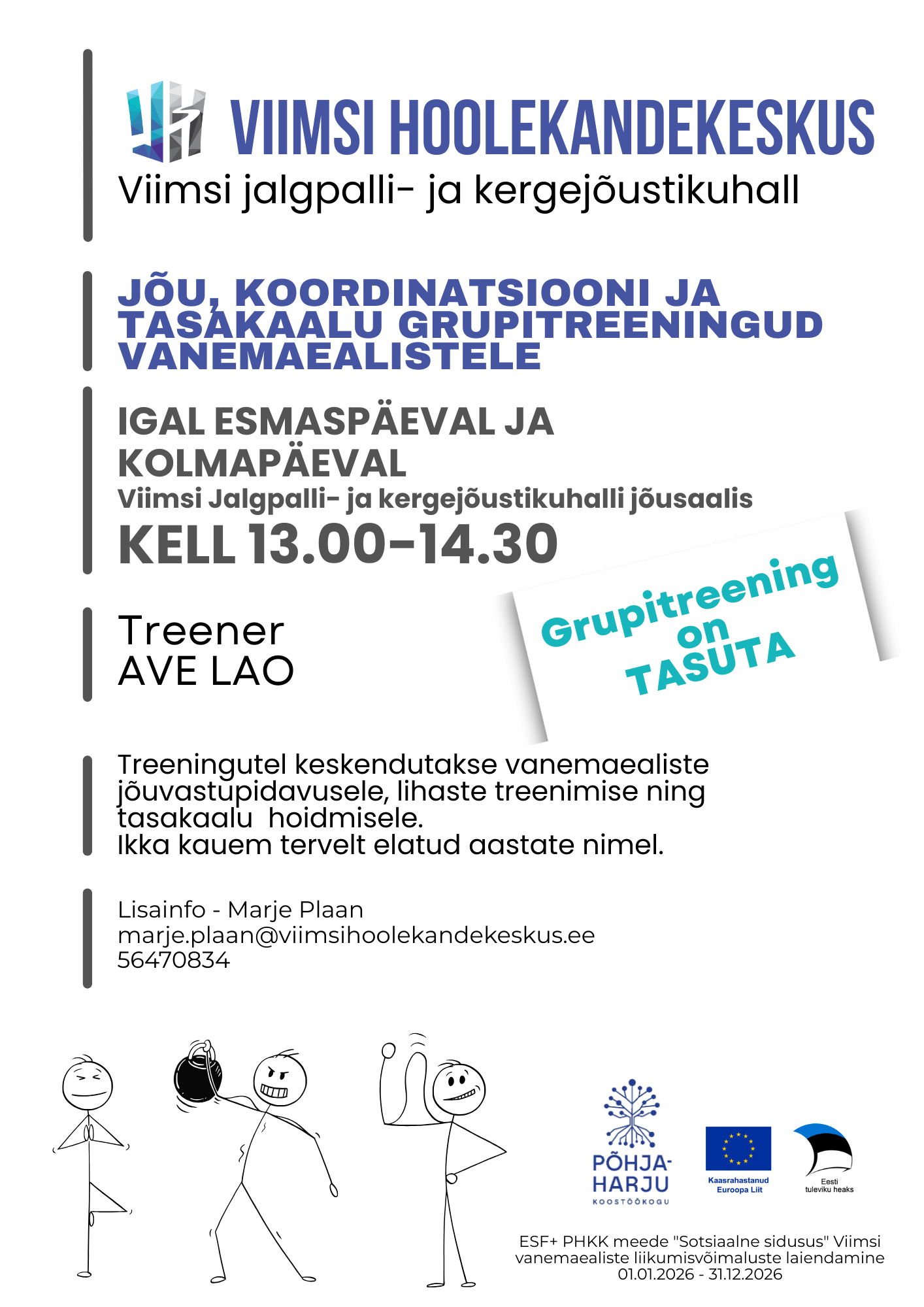 2026 jaanuar ETKNRLP 2930311234Events for jaanuar 1Sündmused puuduvadEvents for jaanuar 2Sündmused puuduvadEvents for jaanuar 3Sündmused puuduvadEvents for jaanuar 4Sündmused puuduvad567891011Events for jaanuar 5 13:00 - 14:00Jõusaali treeningEvents for jaanuar 6Sündmused puuduvadEvents for jaanuar 7 13:00 - 14:00Jõusaali treeningEvents for jaanuar 8Sündmused puuduvadEvents for jaanuar 9 11:00 - 13:00Raamatuklubi Haabneeme päevakeskusesEvents for jaanuar 10Sündmused puuduvadEvents for jaanuar 11Sündmused puuduvad12131415161718Events for jaanuar 12 13:00 - 14:00Jõusaali treening 17:30 - 19:00Rahatarkuse klubiEvents for jaanuar 13Sündmused puuduvadEvents for jaanuar 14 12:00 - 13:30Arvutikursus I päev 13:00 - 14:00Jõusaali treeningEvents for jaanuar 15 15:00 - 16:30LauluklubiEvents for jaanuar 16 11:00 - 13:00Kohvihommik külalisega. Füsioterapeut Siret Sõrmus-Karp 13:30 - 15:00Arvutikursus II päevEvents for jaanuar 17Sündmused puuduvadEvents for jaanuar 18Sündmused puuduvad19202122232425Events for jaanuar 19 13:00 - 14:00Jõusaali treeningEvents for jaanuar 20Sündmused puuduvadEvents for jaanuar 21 12:00 - 13:30Arvutikursus III päev 13:00 - 15:00Randvere päevakeskuse Uusasta tervituskontsert. Esineb ansambel AMULETT 13:00 - 14:00Jõusaali treeningEvents for jaanuar 22Sündmused puuduvadEvents for jaanuar 23 11:00 - 13:00Kohvihommik külalisega Haabneeme päevakeskuses. Matti Vainio 13:30 - 15:00Arvutikursus VI päevEvents for jaanuar 24Sündmused puuduvadEvents for jaanuar 25Sündmused puuduvad2627282930311 Events for jaanuar 26 13:00 - 14:00Jõusaali treeningEvents for jaanuar 27Sündmused puuduvadEvents for jaanuar 28 13:00 - 14:00Jõusaali treeningEvents for jaanuar 29Sündmused puuduvadEvents for jaanuar 30 11:00 - 13:00Vaimse tervise hommik. Mälutreening ja robootikaEvents for jaanuar 31Sündmused puuduvad Kuupäev 26. jaanuar 2026 Kellaaeg 13:00 - 14:00 Jõusaali treening Jaga üritust + Lisa Google kalendrisse + iCal / Outlook eksport