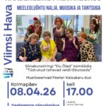 17:00 - 19:00Meeleoluõhtu nalja, muusika ja tantsuga. Musitseerib Peeter Kaisukaru duo. Haabneeme päevakeskuse sõnakunstiringi Elu Õied komöödia Tüdrukud tahavad veidi lõbutseda.