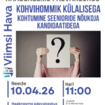 11:00 - 13:00Kohvihommik külalisega Haabneeme päevakeskuses. Kohtumine Viimsi Seenioride Nõukoja kandidaatidega