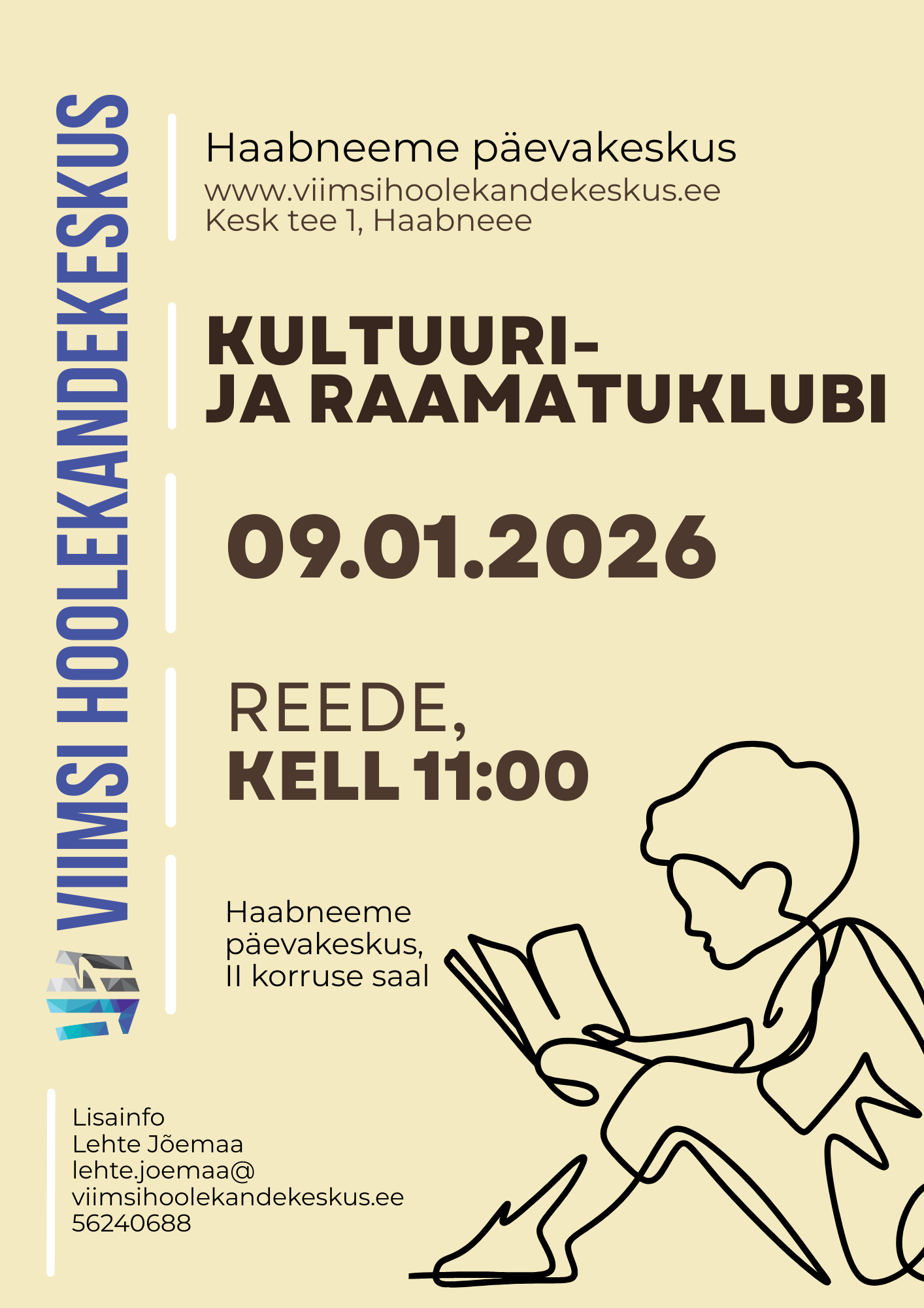 2026 jaanuar ETKNRLP 2930311234Events for jaanuar 1Sündmused puuduvadEvents for jaanuar 2Sündmused puuduvadEvents for jaanuar 3Sündmused puuduvadEvents for jaanuar 4Sündmused puuduvad567891011Events for jaanuar 5 13:00 - 14:00Jõusaali treeningEvents for jaanuar 6Sündmused puuduvadEvents for jaanuar 7 13:00 - 14:00Jõusaali treeningEvents for jaanuar 8Sündmused puuduvadEvents for jaanuar 9 11:00 - 13:00Raamatuklubi Haabneeme päevakeskusesEvents for jaanuar 10Sündmused puuduvadEvents for jaanuar 11Sündmused puuduvad12131415161718Events for jaanuar 12 13:00 - 14:00Jõusaali treening 17:30 - 19:00Rahatarkuse klubiEvents for jaanuar 13Sündmused puuduvadEvents for jaanuar 14 12:00 - 13:30Arvutikursus I päev 13:00 - 14:00Jõusaali treeningEvents for jaanuar 15 15:00 - 16:30LauluklubiEvents for jaanuar 16 11:00 - 13:00Kohvihommik külalisega. Füsioterapeut Siret Sõrmus-Karp 13:30 - 15:00Arvutikursus II päevEvents for jaanuar 17Sündmused puuduvadEvents for jaanuar 18Sündmused puuduvad19202122232425Events for jaanuar 19 13:00 - 14:00Jõusaali treeningEvents for jaanuar 20Sündmused puuduvadEvents for jaanuar 21 12:00 - 13:30Arvutikursus III päev 13:00 - 14:00Jõusaali treening 13:00 - 15:00Randvere päevakeskuse Uusasta tervituskontsert. Esineb ansambel AMULETTEvents for jaanuar 22Sündmused puuduvadEvents for jaanuar 23 11:00 - 13:00Kohvihommik külalisega Haabneeme päevakeskuses. Matti Vainio 13:30 - 15:00Arvutikursus VI päevEvents for jaanuar 24Sündmused puuduvadEvents for jaanuar 25Sündmused puuduvad2627282930311 Events for jaanuar 26 13:00 - 14:00Jõusaali treeningEvents for jaanuar 27Sündmused puuduvadEvents for jaanuar 28 13:00 - 14:00Jõusaali treeningEvents for jaanuar 29Sündmused puuduvadEvents for jaanuar 30 11:00 - 13:00Vaimse tervise hommik. Mälutreening ja robootikaEvents for jaanuar 31Sündmused puuduvad Kuupäev 9. jaanuar 2026 Kellaaeg 11:00 - 13:00 Raamatuklubi Haabneeme päevakeskuses Jaga üritust + Lisa Google kalendrisse + iCal / Outlook eksport