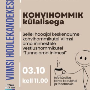 Kohvihommik külalisega “Tunne oma inimesi” Külas on Viimsi sotsiaal- ja tervishoiuosakonna sotsiaaltöö peaspetsialist LEMMI PARKExpired
